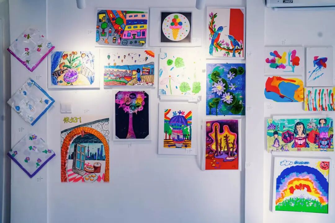 步入展厅,一幅幅色彩鲜明、风格各异的画作铺满墙面。这些作品的创作者年龄介于4至18岁之间,他们或以宇宙星空为题材,或描绘日常生活中的温馨场景,借助画笔释放内心的梦想与创造力。